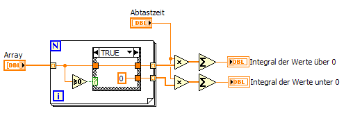 ein Array bilden mit den pos. Werten und eines mit den neg. Werten beide dann integrieren.