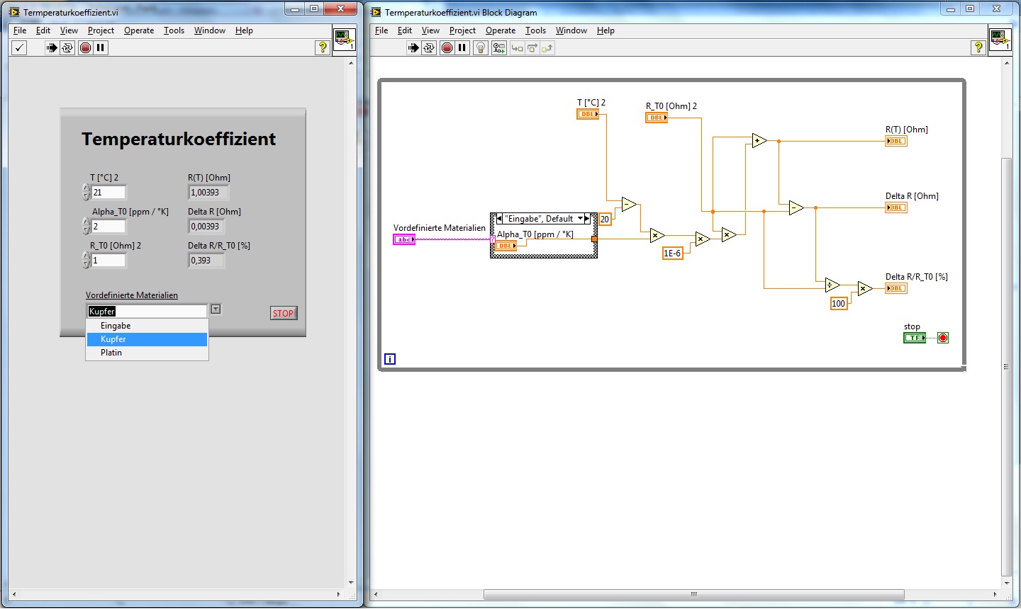 lange konnte ich mir selbst helfen, doch nun brauche ich eure Hilfe. Ich habe ein kleines Programm geschrieben. In diesem gibt es eine Dropdownliste. Bei Auswahl einer bestimmten Bedingung in dieser Liste möchte ich einige Eingabefenster deaktivieren und grau hinterlegen. Dazu kenne ich nur die Möglichkeit "Properties --> Disable and grayed". Genau diese Funktion möchte ich gerne im "Block Diagram" steuern. Heißt konkret, wird Kupfer oder Platin ausgewählt, sollen die weißen Fenster grau hinterlegt werden, dass man da nichts mehr reinschreiben kann.