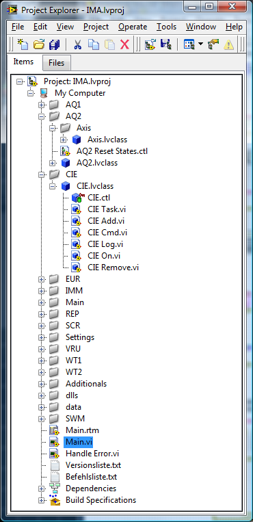 Allerdings widerspricht das der LV-Philosophie und man handelt sich leicht race-conditions ein, weil die Reihenfolge der Klassen-VI nicht per se durch den Draht des Klassenobjekts festgelegt ist. Also doch lieber Verbindungsleitungen. Aber zumindest brauchen die Klassendaten nicht jedes mal, wenn eine Methode aufgerufen wird, kopiert zu werden, so wie es mit einem einfachen Cluster passiert. Hier besteht die Möglichkeit zu Optimierung der Performance