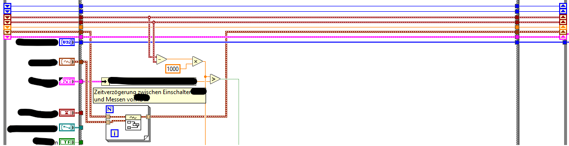 In der ganzen Zeit wird über das cDAQ ein Gerät ausgelesen (DAQmx Nutzung). Initialisiert auf kontinuierliches auslesen mit 2kHz. Die Blöcke, welche übergeben werden sollen kann ich nur auf ca. 1000 stellen, da das Ganze sonst seeeeeeeehr langsam wird. Oder ich muss eine noch kleinere Zahl einstellen.