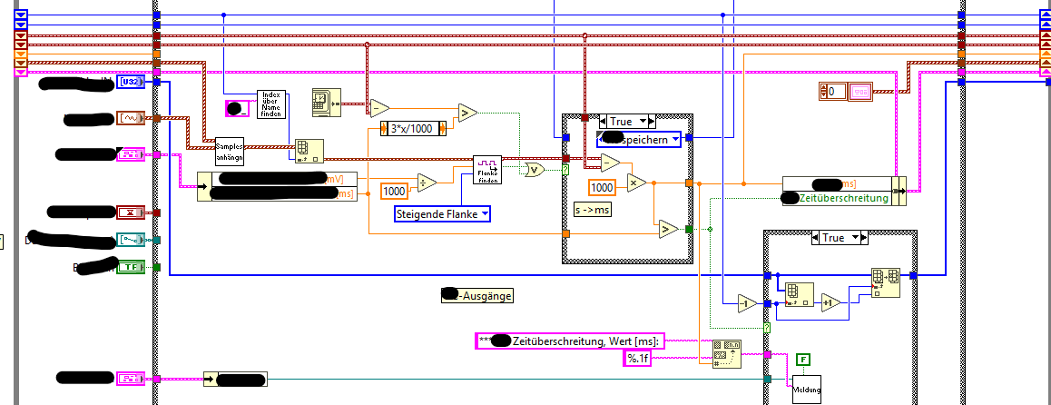 Die Blöcke werden mit einer Queue in eine andere Schleife übergeben und dort ausgelesen (Flanke suchen).