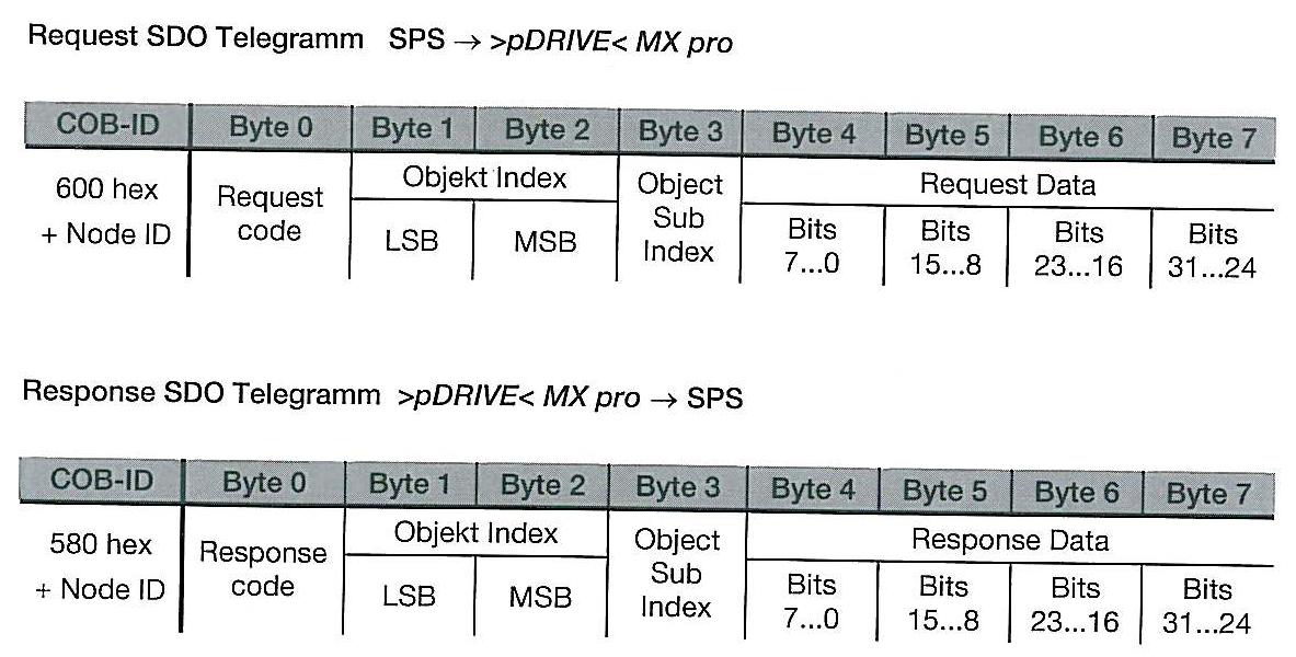 Die Telegramme SDO Request & Response sollten dabei folgendermaßen aussehen: