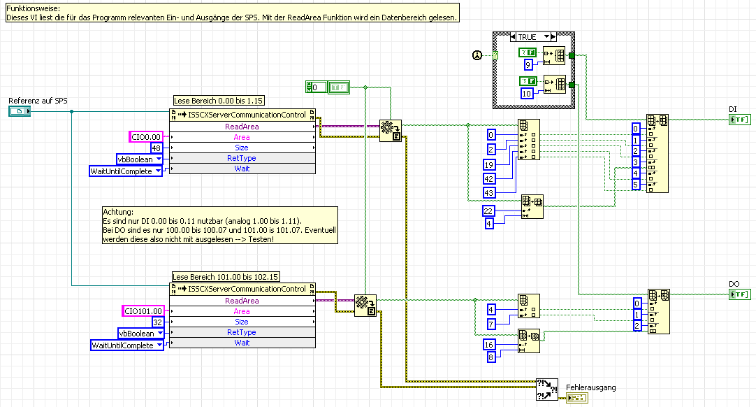 ich möchte die Ein- und Ausgänge einer SPS auslesen. Die SPS (Omron) ist über die serielle Schnittstelle mit dem PC verbunden. Omron stellt hier eine ActiveX Schnittstelle zur Verfügung (wer es kennt, das Programm heißt CX Lite), über die man mit Methodenknoten die Datenbereiche der SPS auslesen und schreiben kann. Nun ist es so, dass ich nur einen geringen Teil der Ein- und Ausgänge wirklich brauche.