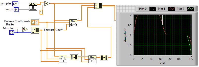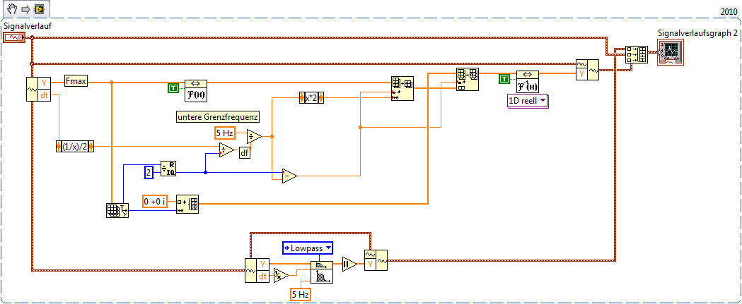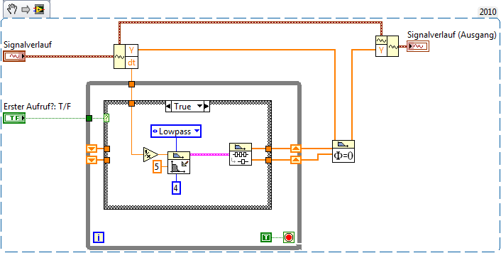 Einverstanden. Aber es handelt sich ja nicht um einen normalen Tiefpass, sondern um ein Verfahren zum Glätten, welches sich Tiefpassfiltern bedient. Diese Vorwärts/Rückwärts Geschichte kannte ich bisher auch nur aus der Theorie und siehe da, das passende VI gibt's tatsächlich. Mit dem Ergebnis des snippets (Init-Eingang vom Filter muss noch verdrahtet werden - vergessen beim ersten Post) bin ich aber garnicht zu frieden. Die Effekte sind kaum in Worte zu fassen ...