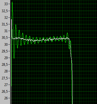 Habs mal für eine einfache Mittelwertbildung probiert. Die Daten haben einen Y-Offset, damit man den Schrott am Anfang und Ende richtig schön sieht.