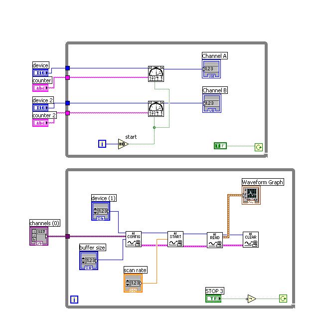 Ich habe nur das "BNC-2120 Quadrature Encoder" Beispiel. Und bei diesem vwird nur ein Puls verwendet und zaehlt immer hinauf.
