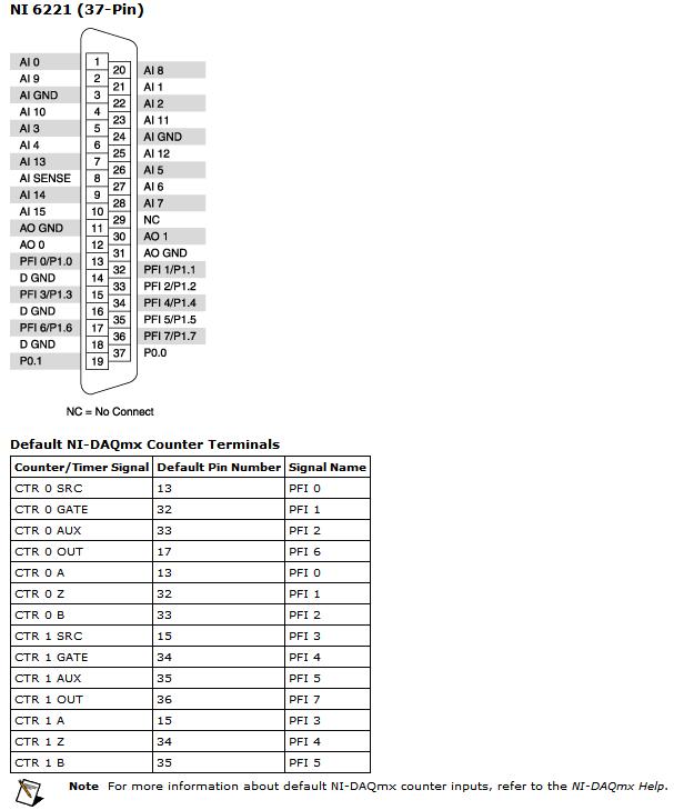 ' schrieb:Wo finde ich eine ordenltliche Pinbeschreinung der NI 6221 37 Pin Karte? Alles was ich habe ist aus der MAX Hilfe (siehe Screenshot). Ich bekomme kein Triggerereignis Programmiert. An den Trigger (Source) kann ich soviele Sachen anlegen und ich finde nichts, wofür die einzelnen Pins verwendet werden können. Habe schon versucht einen Counter auf einen Digitaleingang zu routen (hat auch funktioniert), leider ließ sich dieses Signal aber nicht weiterrouten und als Source des Triggers verwenden.