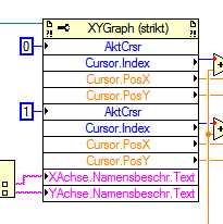 Wobei man aber auch den Nachteil dieser Sache nicht verschweigen sollte: Es änderen sich dann die Plotfarben, und das ist viel schwerwiegender als wenn die nicht mehr sichtbare Kurve noch in der Plotlegende steht. Also: Wenn man drei Plots "Weg" (weiß) , ""Kraft" (rot) , Druck (grün) hat, und nimmt die Kurve "Kraft" aus dem Array heraus, dann ist "Druck" jetzt der zweite Plot, und aus dem grünen Druckverlauf wird ein roter Druckverlauf. Und das ist alles andere als Anwenderfreundlich. Man kann die Sache mit den Farben natürlich ändern, indem man über Eigenschaftknoten die Farben anpasst - ist aber unmständlich.