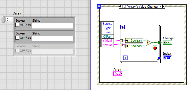 Zitat:Im Gegensatz dazu ist es aber nicht möglich Ereignisse in einem selbst erstellten Array of Cluster zu erfassen.