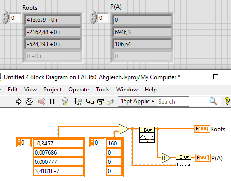 Die Option des Polynomial Roots VI auf "General" umstellst, dann bekommst du die Nullstellen so, wie sie aus dem dahinter steckenden Algorithmus ermittelt werden. Das hilft dir zwar nicht, aber es stellt zunächst einmal dar, dass das schlicht etwas damit zu tun hat, wie der Algorithmus arbeitet.