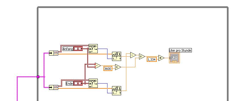 Das liegt aber nicht an meinem Code. Es ist ein absolutes No-Go, in der für gewöhnlich zeitkritischen Hautschleife bei jedem Durchgang eine Unmenge von Eigenschaftsknoten aufzurufen. Daran habe ich aber nichts geändert, weil das nicht Gegenstand der Frage war. Kasi hat aus demselben Grund das alles weggelassen. Damit ist das VI um Größenordnungen schneller.