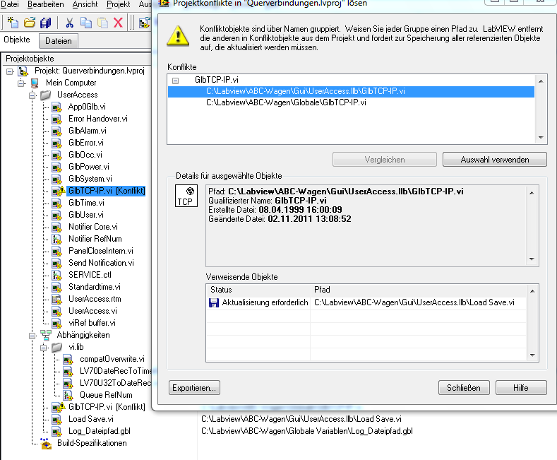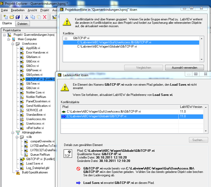 4) Ich weiß jetzt nicht wie das .vi aussieht bzw. wie es im Programm eingebunden ist aber könntest du wenn an mehreren Stellen in deinem haupt.vi darauf zugegriffen wird nicht einen Klon (sprich einfach Glb-TCPIP_2.vi) machen und halt dann das Orginal und den Klon verwenden