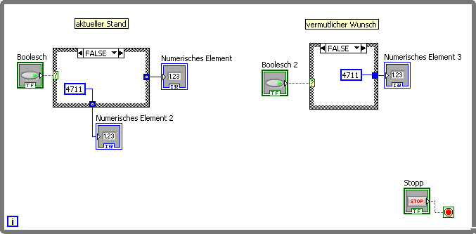' schrieb:... Case-Structure soll, und dann je nach Case (True, False) einen anderen Weg nehmen soll ..soll bedeuten andere Funktionalität mit gleichen Ausgangsdaten