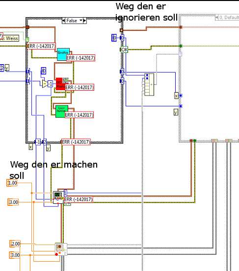 Ich muss für ein Projekt ein Programm schreiben bei dem ein Datenstrom durch eine Case-Structure soll, und dann je nach Case (True, False) einen anderen Weg nehmen soll. D.h. ich will sowas wie eine Verzweigung machen.