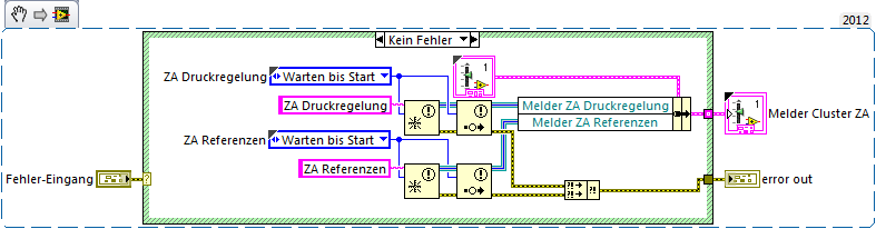 (2) Druckregelung.vi. In diesem VI lesen ich die Meldung. Innerhalb des VIs setze ich den