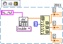 Nun mein Problem, wenn ich mit meinem VI das Textfile auslese, wirft es mir jedes mal die Nachkommastellen weg und ersetzt diese durch Nullen, wobei es egal ist, ob ich als Dezimaltrennzeichen ein Komma oder einen Punkt verwende (aus diesem Grund sind auch beide Varianten in der Beispielfile "vertreten"...) Das ist allerdings bei der gewünschten Genauigkeit meiner Ansteuerung nicht akzeptabel.