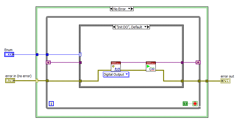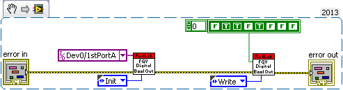 Bei Programmstart rufst du das VI mit "Init DO" auf, danach nur noch mit "Write DO", und nur bei Programmende mit "Close DO".