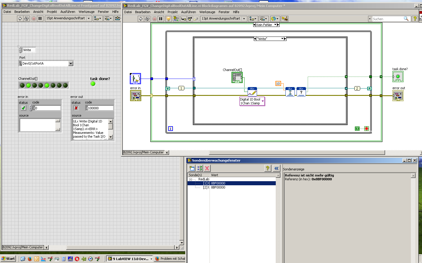 Mein Hauptprogramm habe ich mit einer Queue gelöst. In dieser Queue rufe ich an ein paar stellen mein VI zum steuern der Digitalen Ausgänge auf.