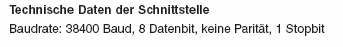 Zuerst mal alle wichtigen Daten zur Schnittstelle des Sensors: