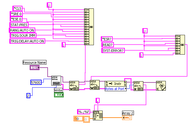 Wenn Du die Befehle hintereinander schickst, dann musst Du aber aufpassen, dass ein "VISA Read" wirklich nur hinter einem Befehl kommt, der auch ein "?" enthält, also z.B. *IDN?, oder *READ?....