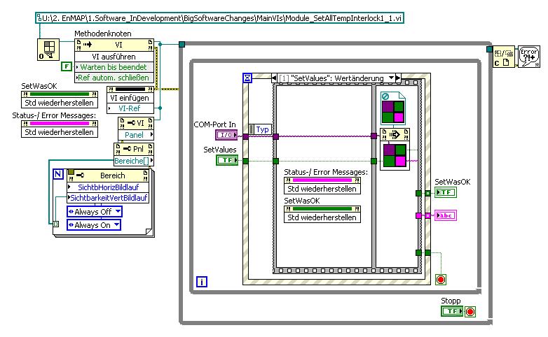 Oder noch besser, verwende eine LabVIEW-Kommunikationsschiene zwischen Main- und Subpanel-VI, z.B. Melder oder Queues.