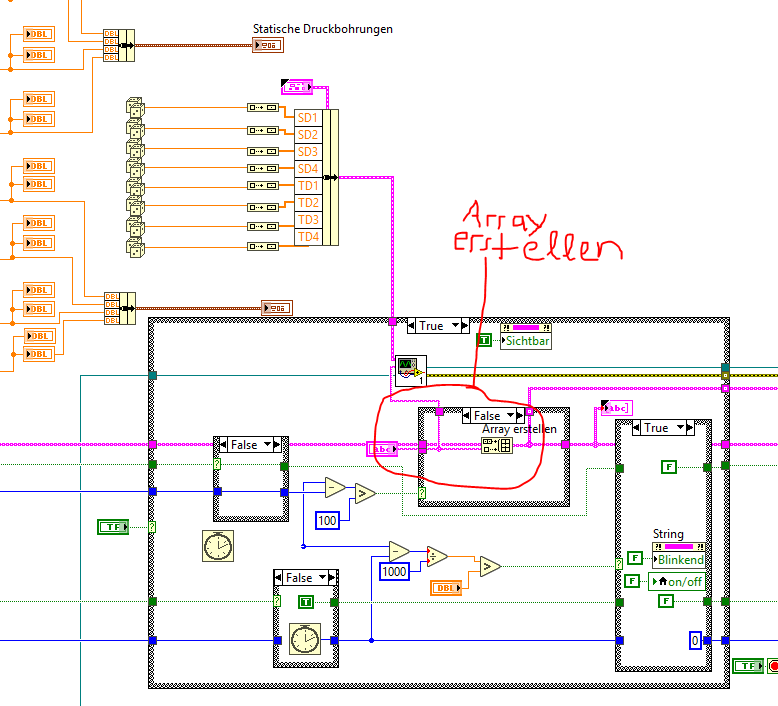 Andere Möglichkeit: Bei den ganzen Terminals fehlen die Labels! Vielleicht ist LabVIEW deshalb verwirrt und weiß nicht, welche Daten wo hingehören??? Big Grin
