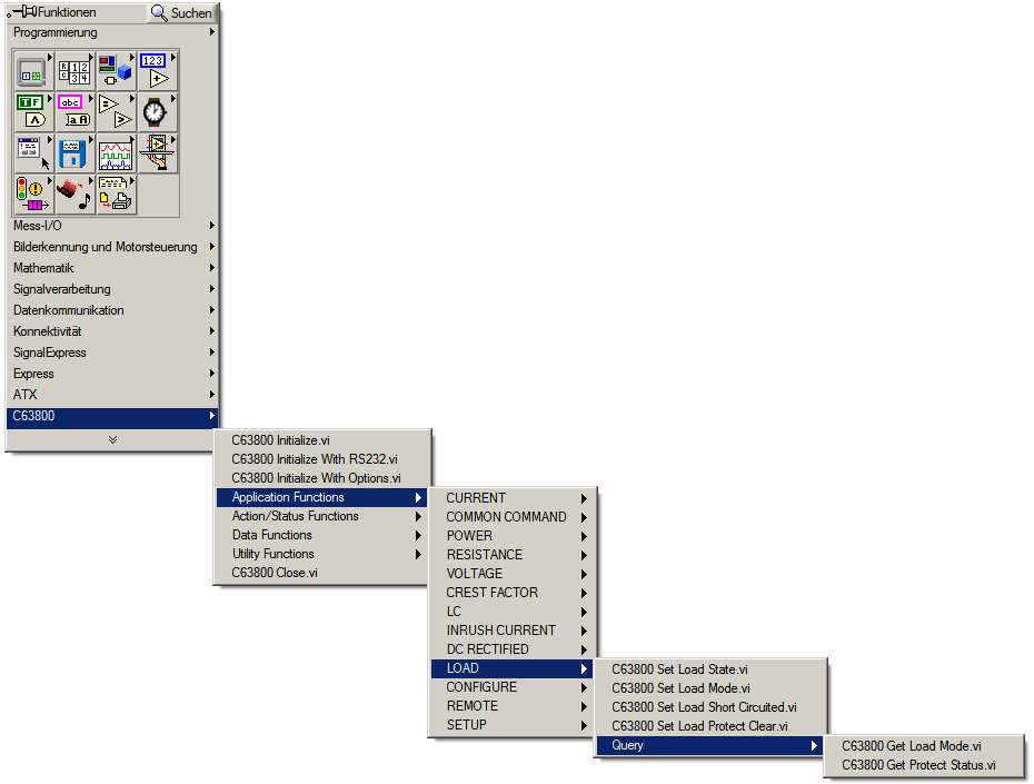 Also jetzt hat alles geklappt und jetzt, dank einiger Tipps von Seiten des Ingenieurs, komme ich auch soweit mit der Kommunikation klar. Ich hab schon ein erstes "Programm" zum aktivieren der Last und zum Messen der Spannung und Ströme geschrieben. Programmieren ist dabei glaube ich etwas hochgegriffen, da es ja ansich nur VIs reinziehen und verbinden ist.