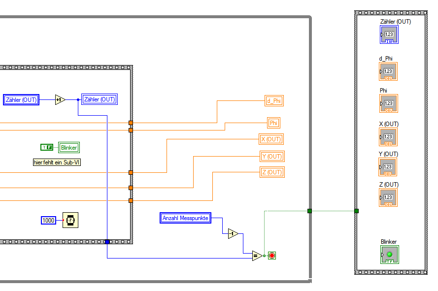 2.) Die Übertragung der berechneten Werte aus dem Sub-VI in Hauptprogramm funktioniert nicht. Muss ich da auch mit Meldern arbeiten oder ganz anders?