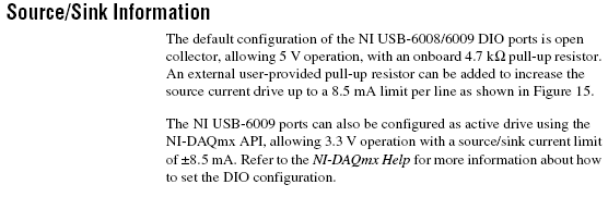 Leider habe ich die USB6009 noch nicht selbst benutzt und weiß es nicht. Fest steht nur, daß, wenn so etwas im Datenblatt steht: