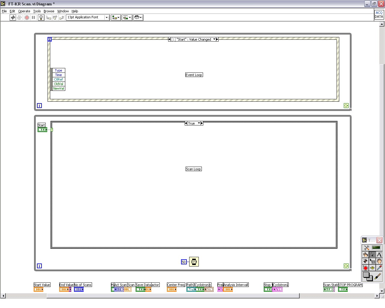 Die 2te Schleife soll dann die eigentlich Messschleife repräsentieren, die nach Drücken des Start Buttons losgetreten wird. Oder gibt es dort einfachere und effektivere Methoden? Vielleicht ist meine Frage auch einfach zu trivial, aber ich habe leider nicht die Erfahrungen, wie ein Programm am sinnvollsten Umsetzen sollte.