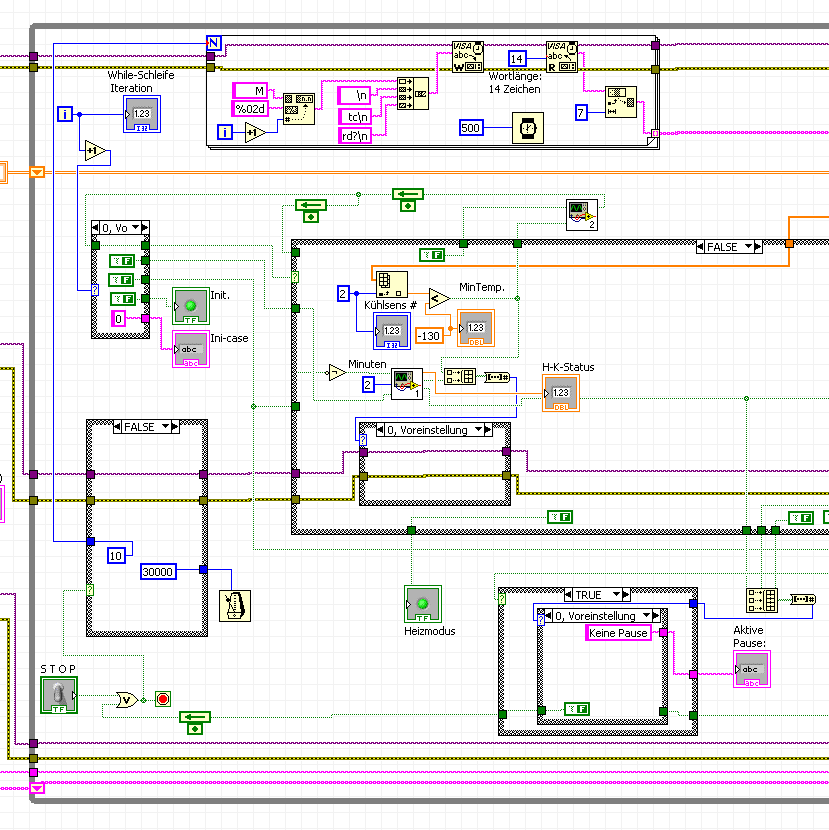 Es gehört allgemein zum guten Programmierstil sich VORHER gedanken zu machen, welche Funktion das Programm haben soll. Was kann NI dafür, wenn man erst später merkt, dass man das Programm auch zwischendurch beenden möchte?