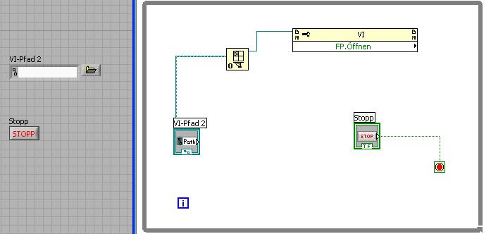 Wenn Du das Bedienelement für den Pfad gegen "Aktueller Pfad des VI's" austauschst und den Eigenschaftknoten auf schreiben stellst, dann kannst du aus dem Programm heraus das Frontpanel öffnen und schließen lassen. Ich mache das hin und wieder, damit die Bedienelemenete auch in dem Moment sichtbar sind, wenn Eingaben gemacht werden sollen.