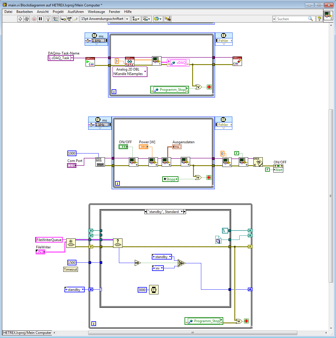 das Blockdiagramm meines Hauptprogramms wächst immer weiter an. Ich habe mindestens 4 verschiedene Task die parallel laufen und es könnten noch welche hinzukommen. Jetzt Frage ich mich, ob das so wie ich die Tasks in das Hauptprogramm eingebettet habe überhaupt sinnvoll ist aus technischer Sicht wie auch aus Gründen der Übersichtlichkeit (Kosmetik).
