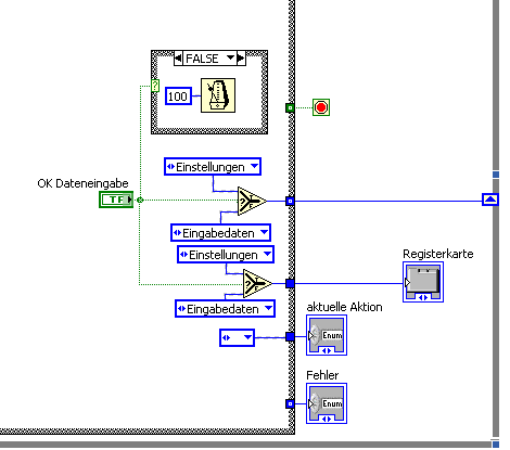 Ich habe zwei Sequenzen drin, daher meine Frage welche von beiden ich rauswerfen sollte. Wenn ich die erste rausschmeiße und durch den Fehlercluster aus dem Methodenknoten ersetze Ich glaub ich habs verstanden), stellt sich mir die Frage, wie ich dann die noch fehlenden Programmteile in die richtige Reihenfolge bringen soll. Klappt das dann ohne weiteres? Immerhin müssen da noch einige Registerkarten abgearbeitet werden und dann noch Meßdaten berechnet und ausgegeben werden. Der große Überblick fehl mir da noch irgendwie.