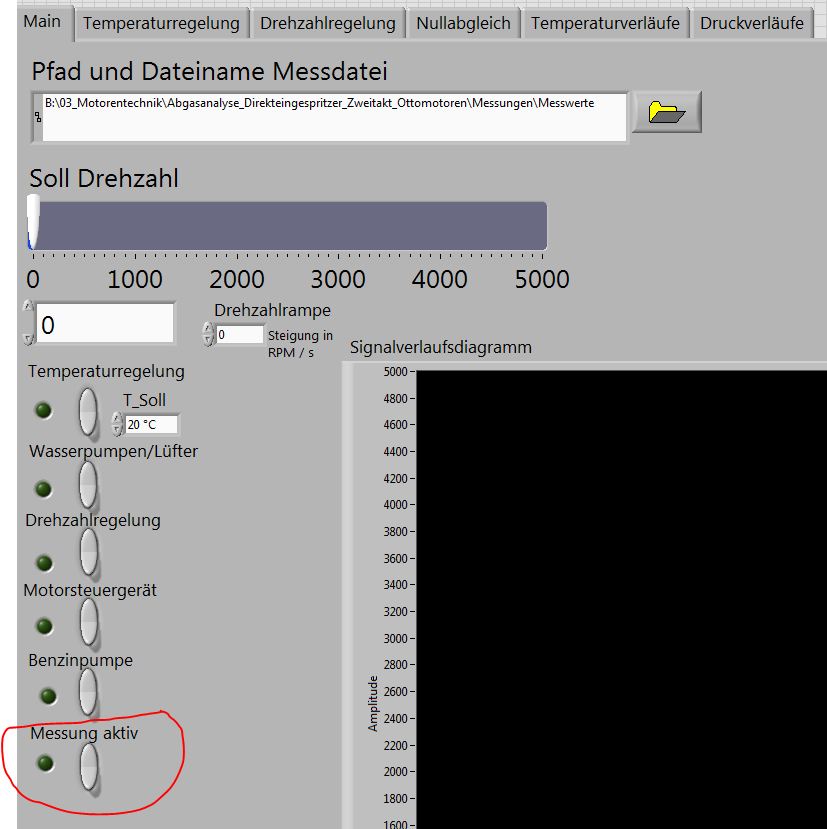 Ich wollte, dass ich in der Prüfstandssteuerung (Hauptprogramm) auf den Knopf "Messung aktiv" drücke und dann das SUBVI gestartet wird.