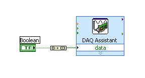 Weil das Handling des DAQ-Assistenten recht einfach ist, möchte ich ganz gerne damit weiterarbeiten. Daher suche ich weiter nach einer Lösung, wie ich den Dateneingang richtig ansprechen kann. Wenn ich den Dateneingang auf 1 Leitungseingang konfiguriere und schließe dann direkt einen Schalter (boolesch) an, erhalte ich die Fehlermeldung, dass die Datenquelle über 1 Kanal verfügt, die Senke über 8. Mit meiner Schaltung erhalte ich die Fehlermeldung nicht mehr, weiß allerdings nicht, ob es nicht bessere oder fachlich richtigere Lösungen gibt.