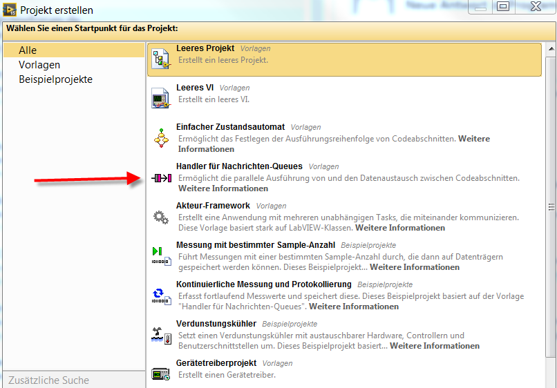 Wenn LabView gestartet wird, gibt es einen Startbildschirm.