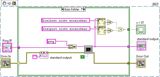 ich möchte checken ob ein Laufwerk erreichbar ist, auf das ich im Normalfall schreibe. Fällt das Laufwerk aus soll woanders gespeichert werden, bzw. zwischengespeichert werden. Um dies zu checken gibt es einige Möglichkeiten, z.B das VI "prüfen ob Ordner vorhanden". Wenn ich einen Serverabsturz simuliere durch abgezogenes Netzwerkkabel und das Programm ausführe, hängt LabVIEW und versucht die Verbindung herzustellen. Habe schon einiges probiert, wie z.B den cmd ping Kommando. Habt ihr eine Idee wie man die Abfrage, stabiler bzw. echtzeitfähiger realisieren kann?