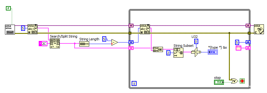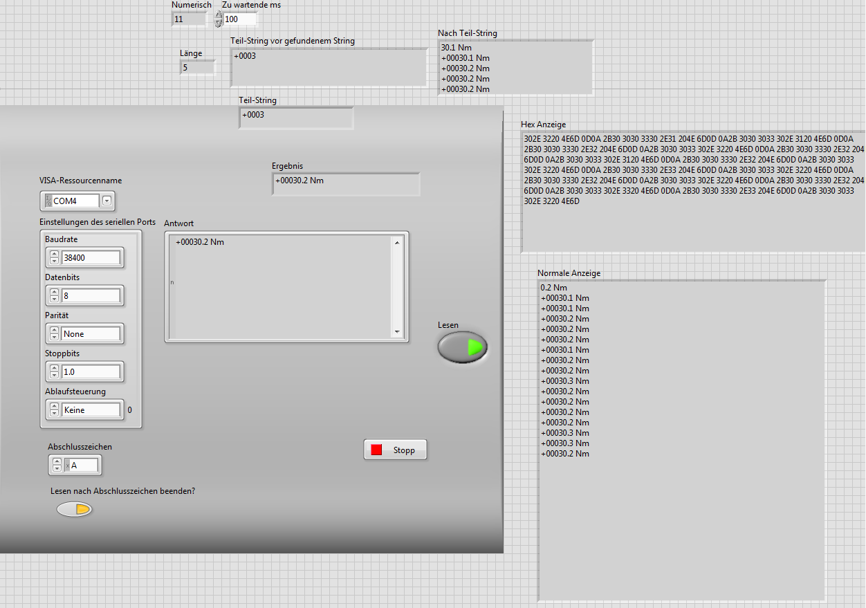 Jedoch möchte ich aus dem Protokoll einmal den Messwert herausziehen und als Doublewert im Fronpanel anzeigen, sowie einmal die Einheit als Stringanzeige.