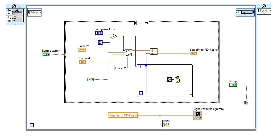 Die Frage ist doch ohnehin: Was soll denn mit dem Sollwert geschehen, wenn das Ende der Rampe erreicht ist? Die Rampe liefert doch nur für eine gewisse Zeit den Sollwert, was geschieht danach? Eine Regelung sollte doch wohl dauerhaft funktionieren.