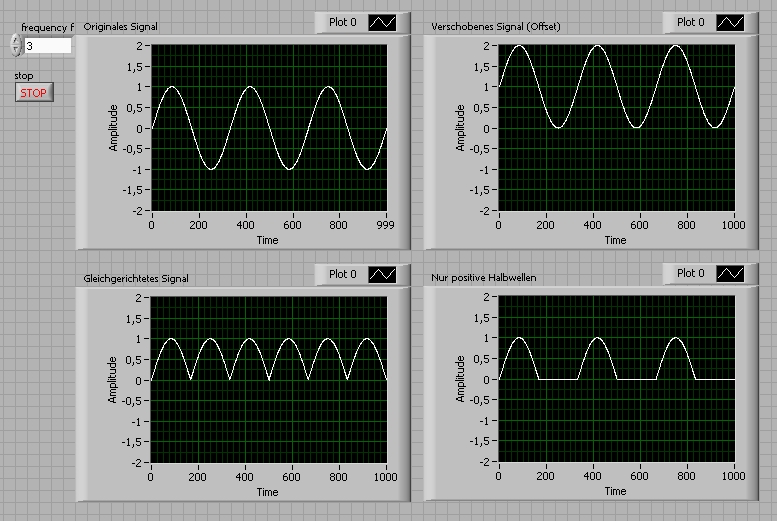 Oh man...diese Schnittstelle ist zwar günstig in der Anschaffung und deswegen vielleicht auch für Schulzwecke bezahlbar, aber alles andere als einfach.Viele Funktionen fehlen einfach und deswegen muss man dieses softwaremässig umgehen und ob es da Sinn macht an der Schnittstelle LabVIEW zu lernen.Naja...Ansichtssache, ...jedenfalls nimmt mein Vorhaben immer grösseres Ausmass und wär wirklich über einen Tipp dankbar, wie ich die anderen Signale berechnen kann.