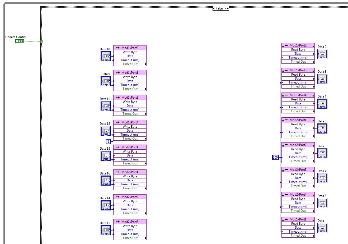 Aber einige Sekunden nach dem ich den "Update Config"-Button betätige (serielle Konfiguration, Baud rate etc.) hängt sich das FPGA.vi auf. Es kommen zwar keine Fehlermeldungen und alles sieht danach aus, dass das VI läuft, aber es wird nichts mehr gesendet und empfangen.