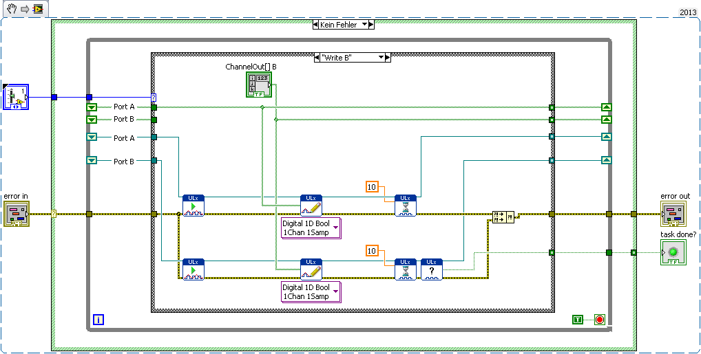 Jetzt habe ich mit Hilfe vom Forum eine FGV erstellt, um diese Ports zu steuern. Habe dafür 2 VIs erstellt, eine FGV für Port A und eine FGV für Port B.