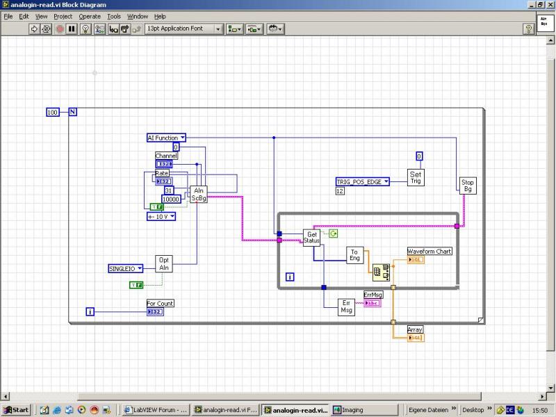 Habe mich noch mal mit dem SubVi AInScBg beschäftigt. Ich habe die Leseroutine so geändert, dass der Wert erst weiterverarbeitet wird, wenn das SubVi GetStatus den Wert Idle ausgibt.