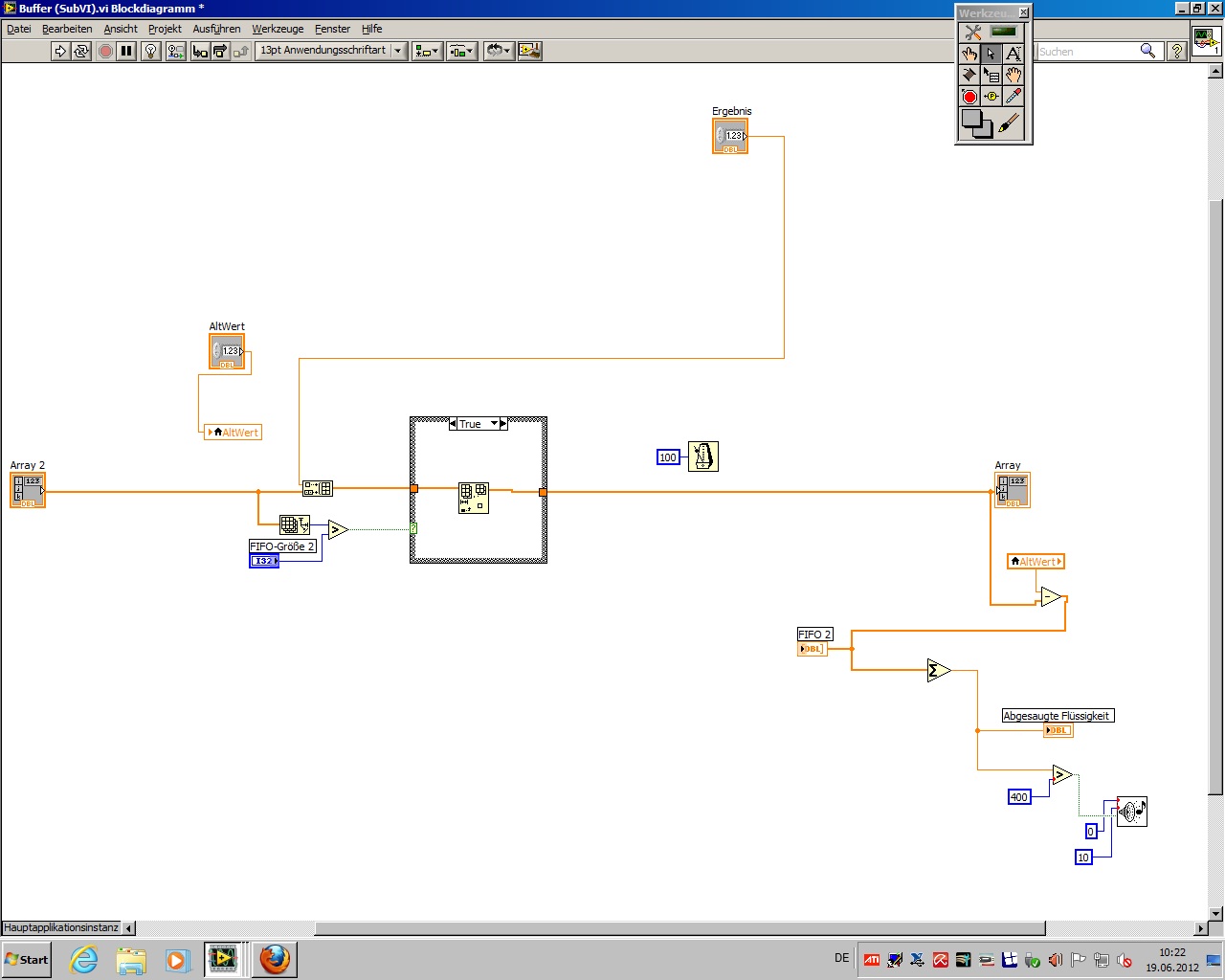 Nun will ich jeweils den alten Wert minus den neuen Wert rechnen lassen und diesen dann in diesen Ringbuffer schreiben lassen.