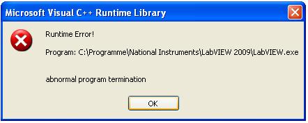 Nach kurzer Zeit wird immer ein Runtime Error von der Microsoft Visual C++ Runtime Library ausgegeben. (siehe Bild)