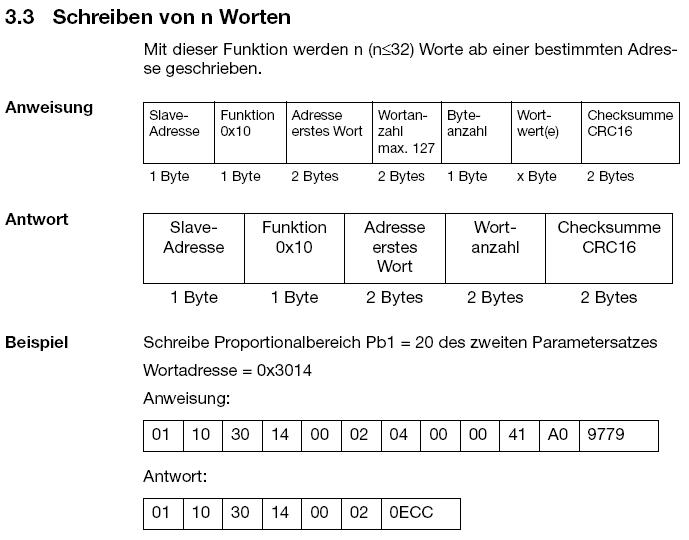 Was auch nicht aus dem DOC-Fragment hervorgeht, ist, warum überhaupt immer außer dem Wert eine Adresse mit übertragen wird. Anscheinend ist der Empfänger der Nachricht nicht intelligent genug selbt zu wissen, wo z.B. der Wert "Proportionalbereich" zu speichern ist.