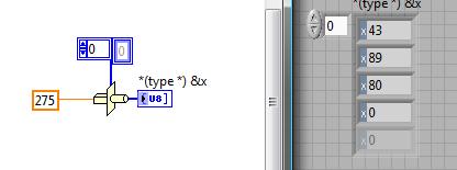 Als Hilfestellung habe ich ein altes Programm, bei dem eine Zahl (SGL) in einen 4 Byte Array umgewandelt wird. Leider wurde das Blockbild nicht mit abgespeichert.