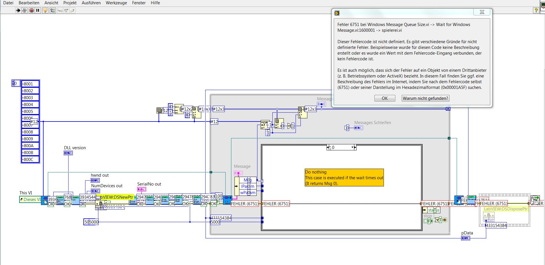 Ich habe auch bereits die vorhandenen Beispiel VI's getestet um mich in das Thema einzuarbeiten.