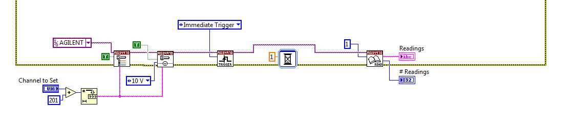 Ich gebe einen Befehl an ein Gerät, dieses löst einen Impuls aus. Diesen Impuls muss ich mit einemr Agilent 34970a messen.